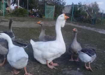 Продаем гусей живым весом 550 р кг. Выращены на свободном выгоне, на водоёме, корм- зерно. 3 гусика. Гусак и две гусыни